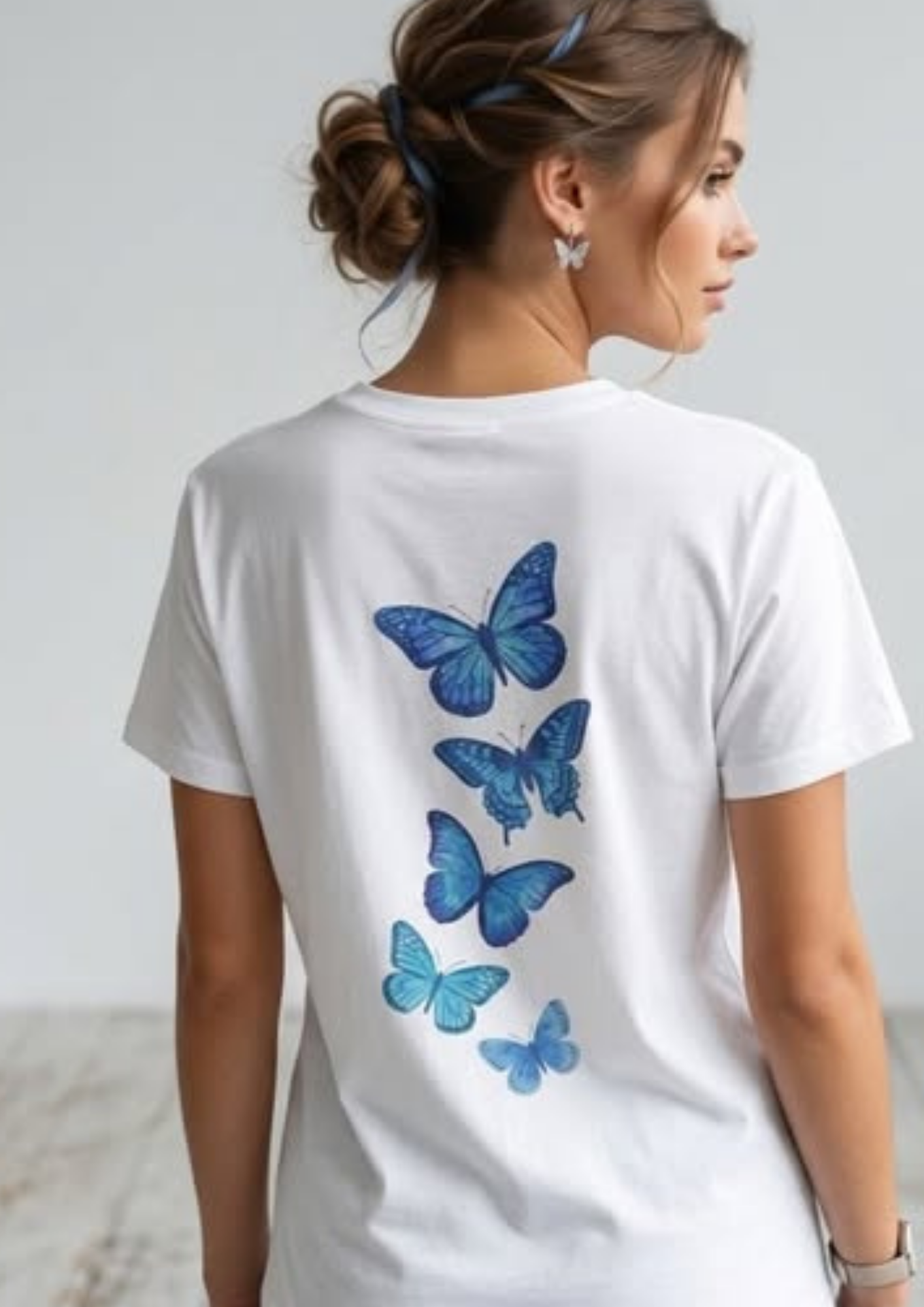 Keep it soft and effortless with this Blue Butterfly t-shirt, featuring a delicate butterfly on the chest and a flowing cascade of watercolor butterflies down the back. Light, airy, and nature-inspired, this design brings minimalist, whimsical vibes to your everyday wardrobe. โจ